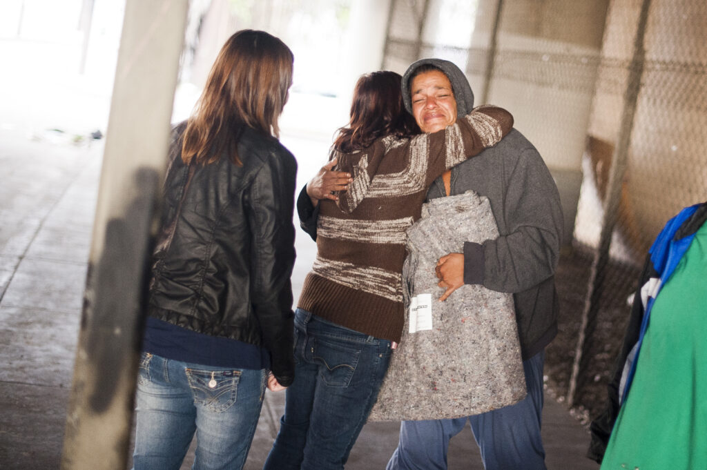 Our direct outreach to our unhoused neighbors is where magic happens. After training and coaching volunteers are guided and led by Giving Spirit leadership to neighborhoods, encampments and to agency partners. It is a unique opportunity to learn by serving a widely diverse universe of the poor with our signature survival kits. Lives, souls, hearts change, stereotypes fade with the truth as the one degree of separation between us clears the pathway to powerful understanding for the volunteer AND for the recipient.